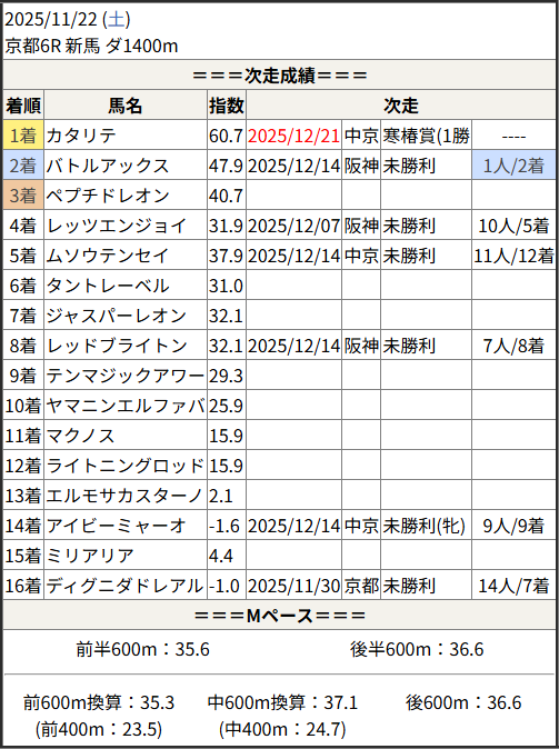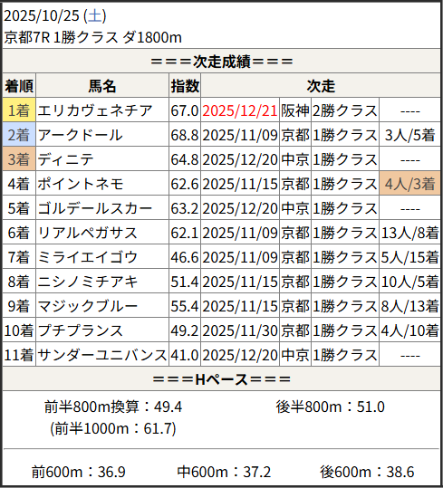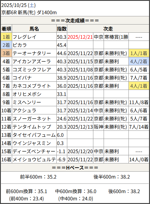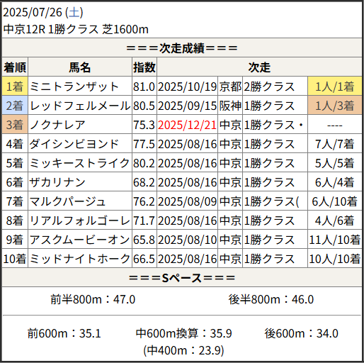 2025/12/21 中京6R 1勝クラス・牝:結果