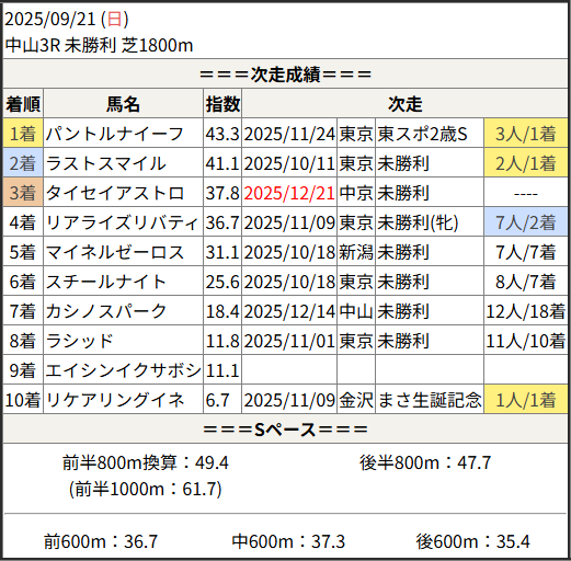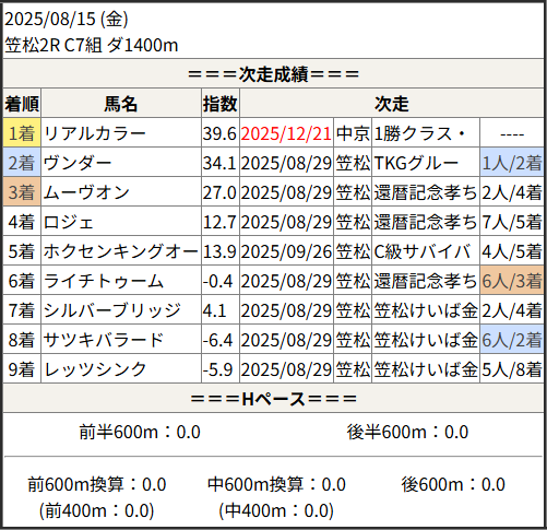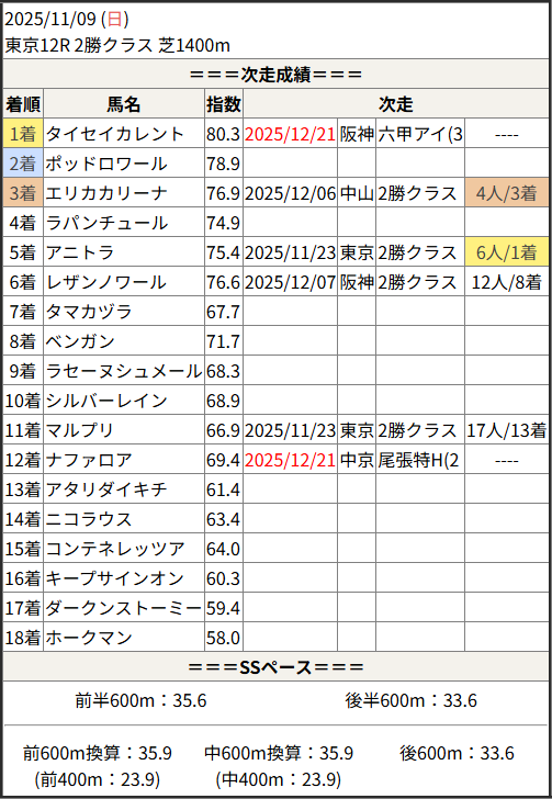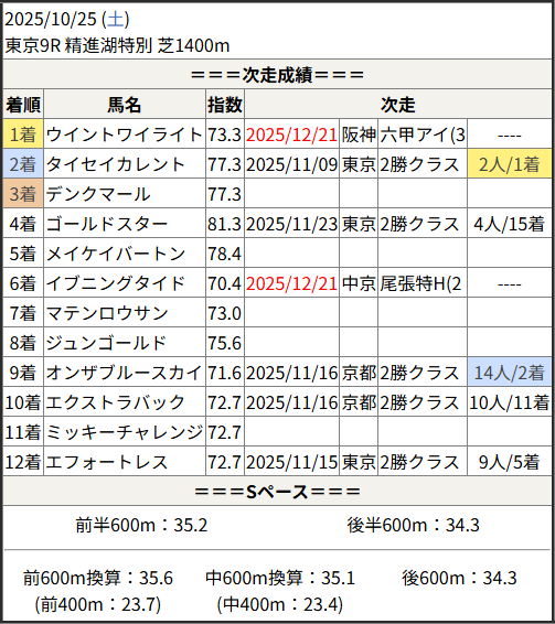 2025/12/21 中京9R 寒椿賞(1勝):結果