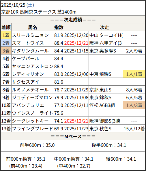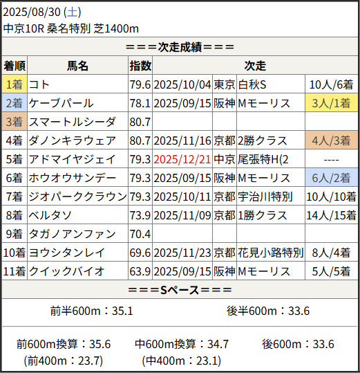 2025/12/21 中京10R 名古屋日(2勝):結果
