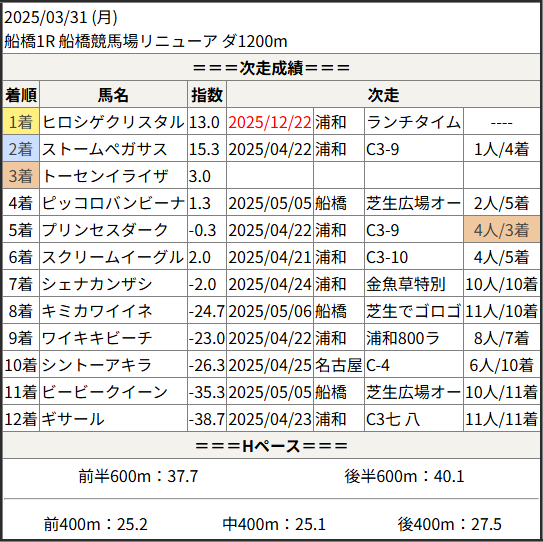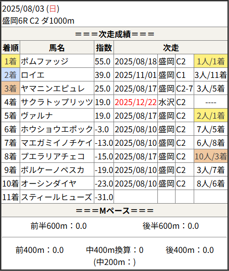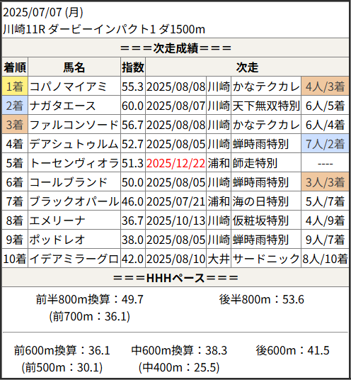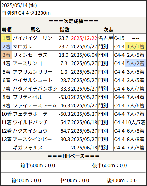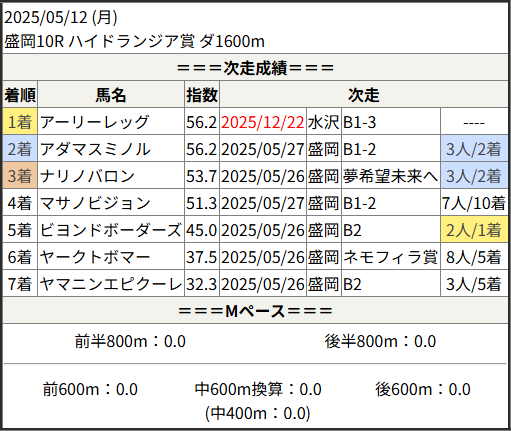 今回のメンバー相手に通用するかは、スピード指数表と合わせてご覧下さい。