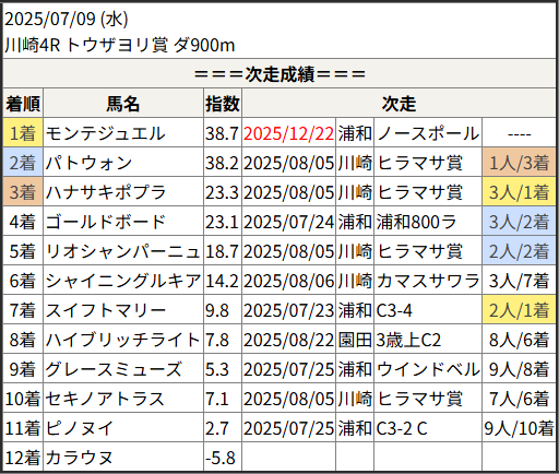 前走戦った相手が次走好走しているレース出身馬の一覧です。