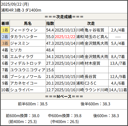 2025/12/22 浦和5R 埼玉のど真ん中!東松:結果