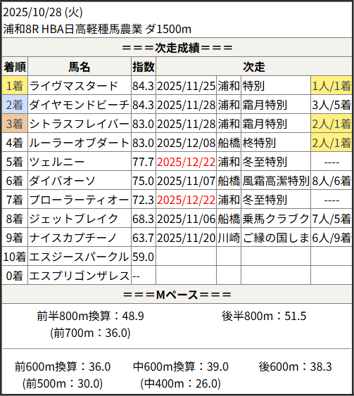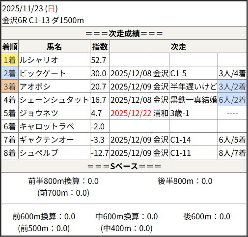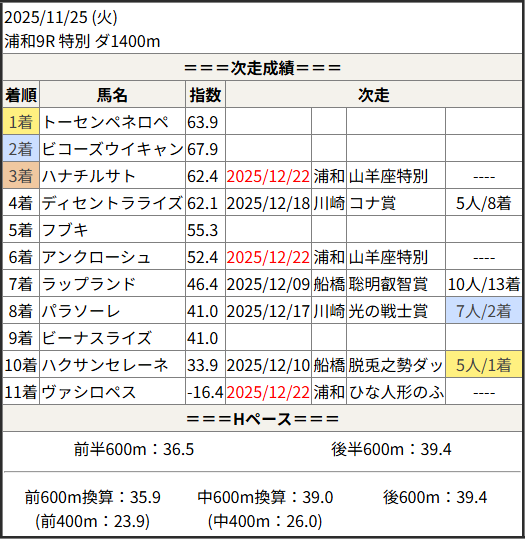 2025/12/22 浦和2R ランチタイムチャレン:結果
