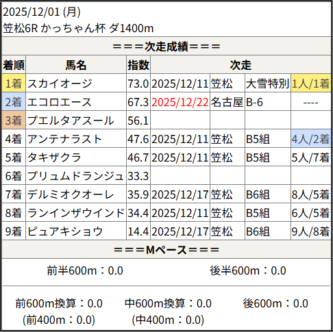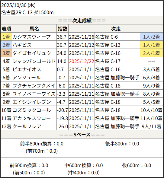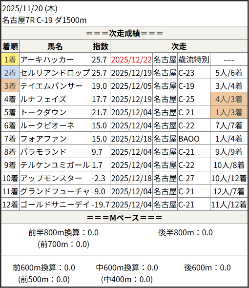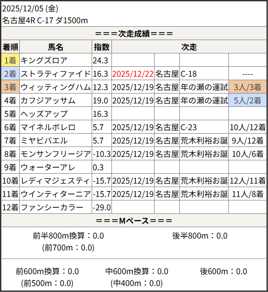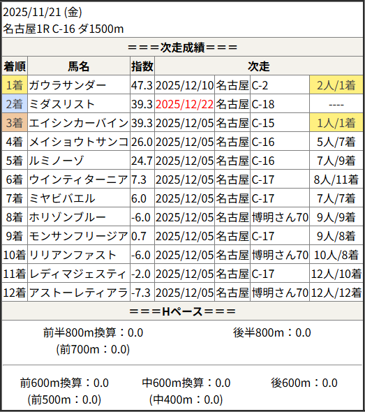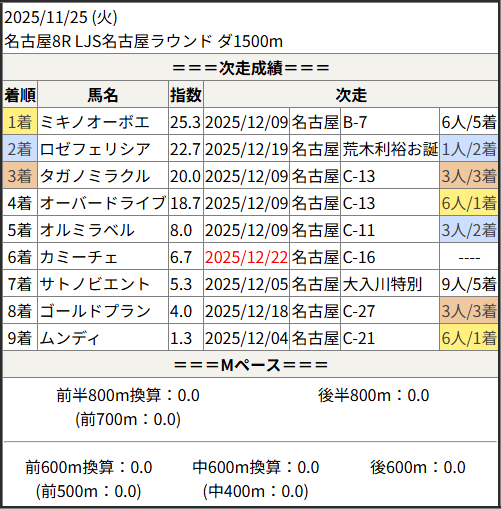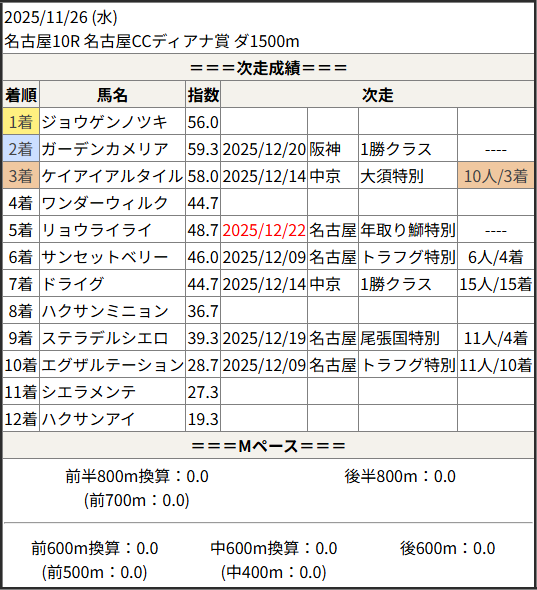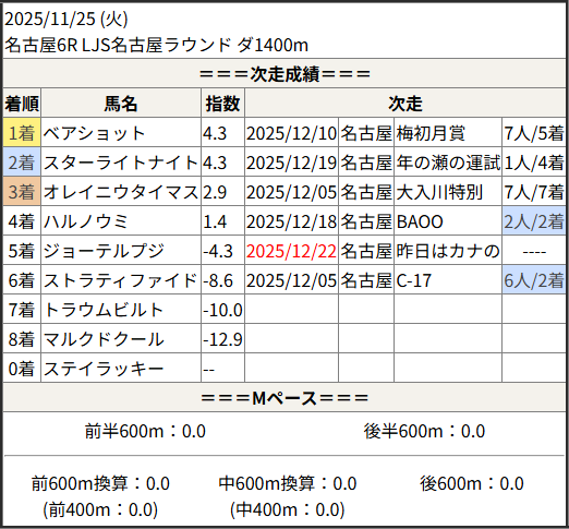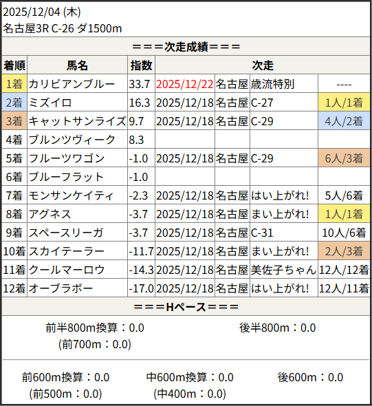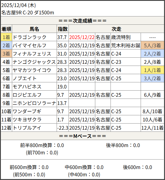 2025/12/22 名古屋11R 年取り鰤特別:結果