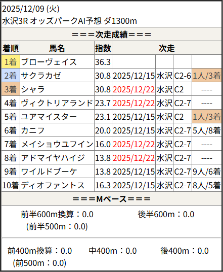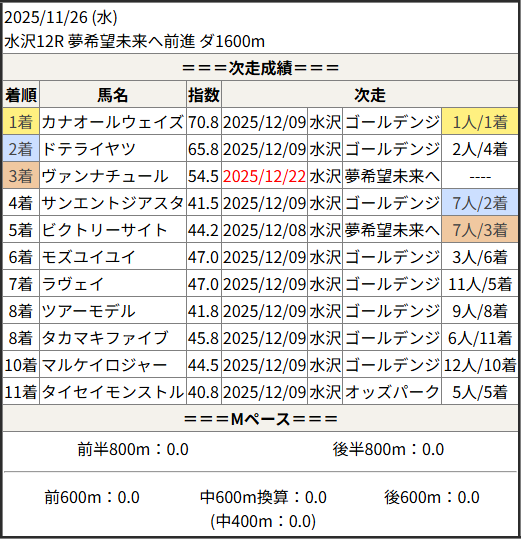 2025/12/22 水沢12R 夢希望未来へ前進:結果