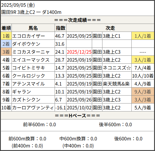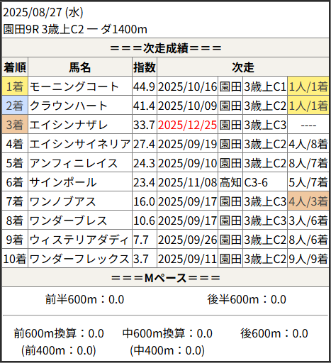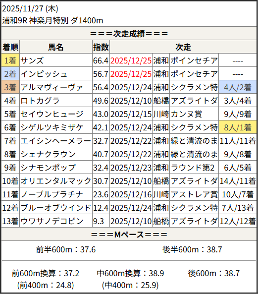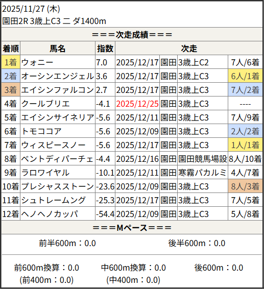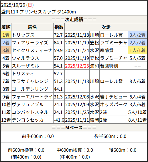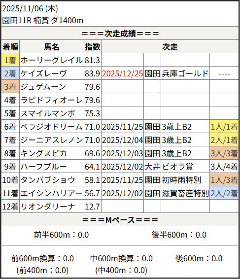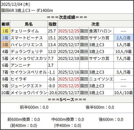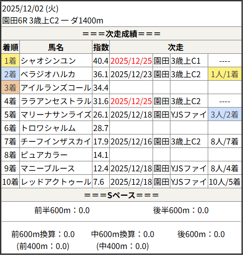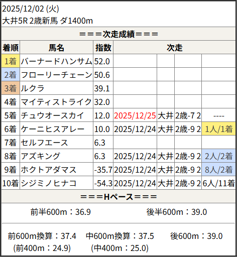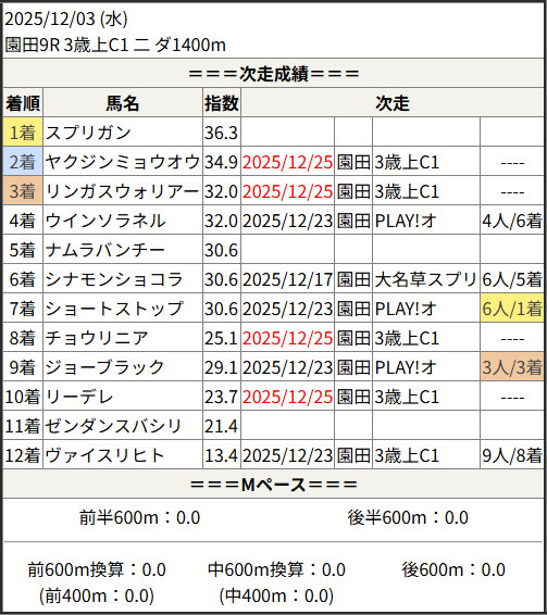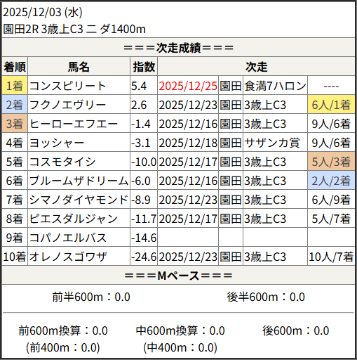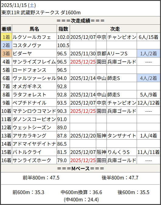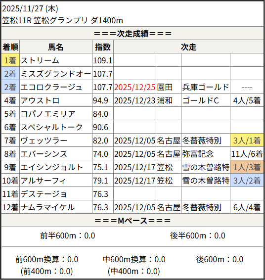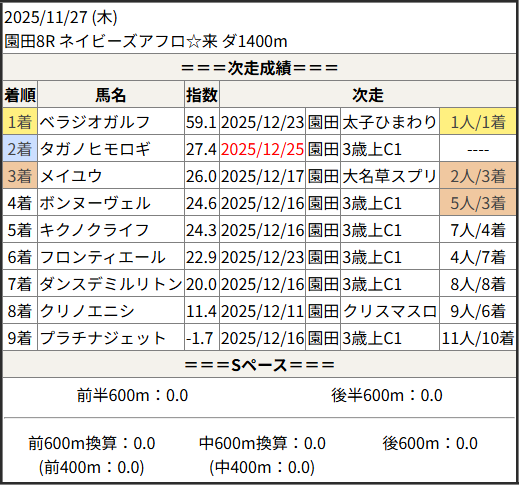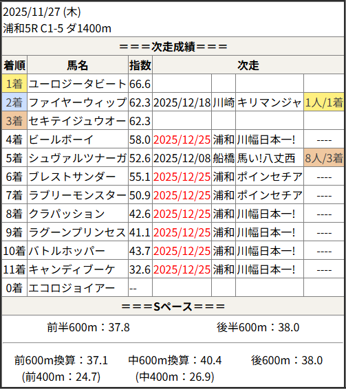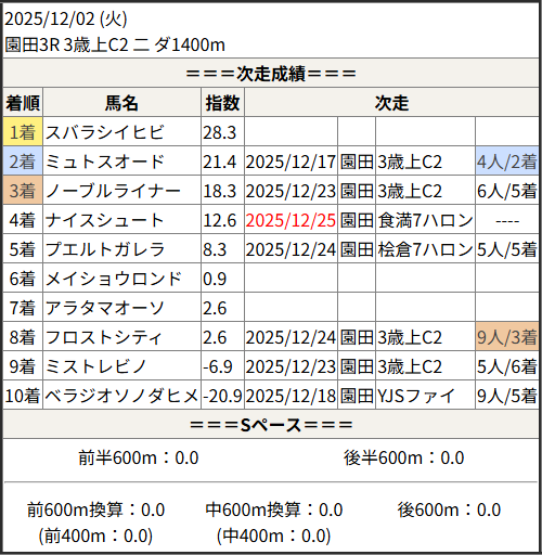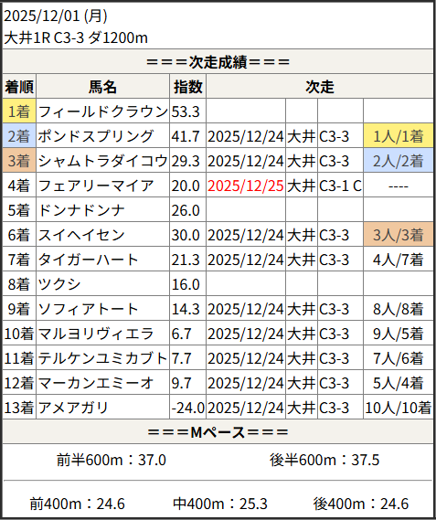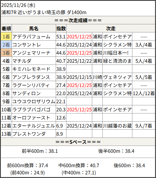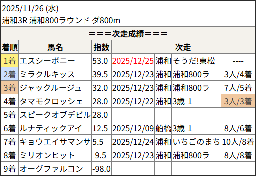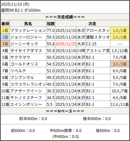 Home / 予想データ / 次走好走 / 2025/12/25 次走好走馬の目立つ組出身
