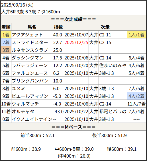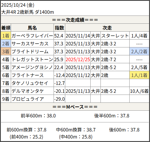 2025/12/25 大井6R 2歳-7 2歳-8:結果