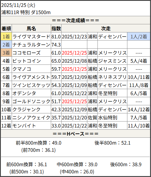 2025/12/25 浦和11R メリークリスマス特別:結果