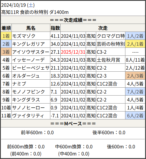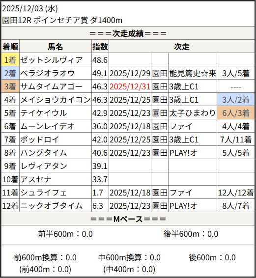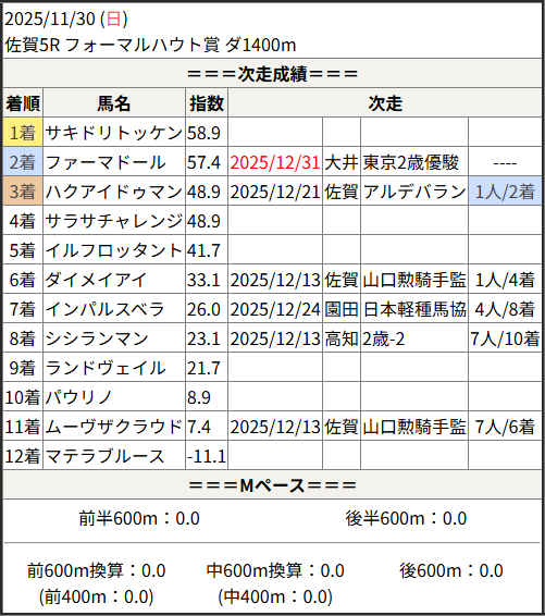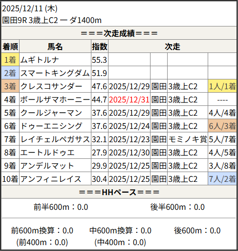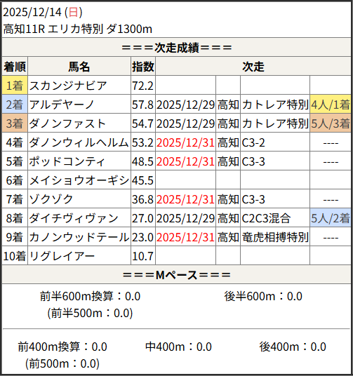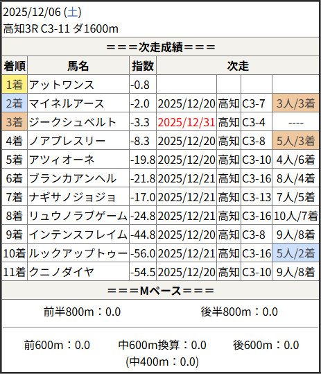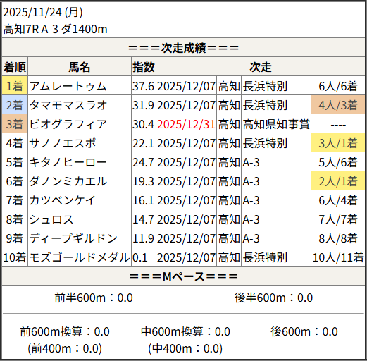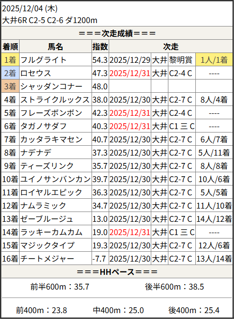 2025/12/31 高知6R C3-2:結果