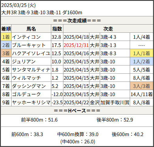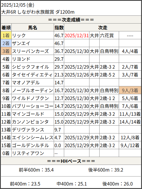 2025/12/31 大井1R 3歳-1 3歳-2:結果