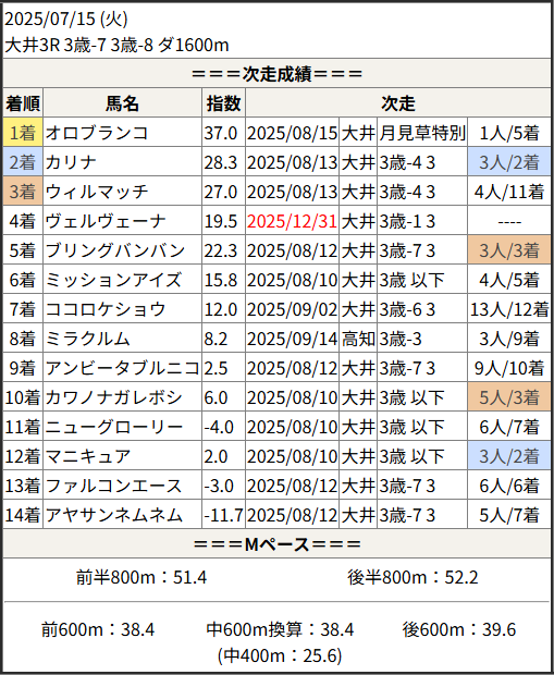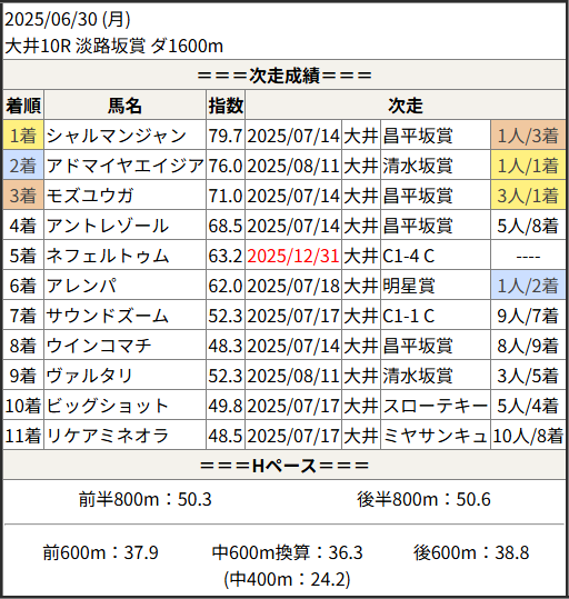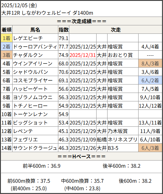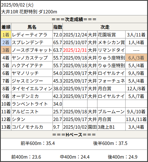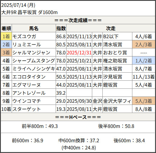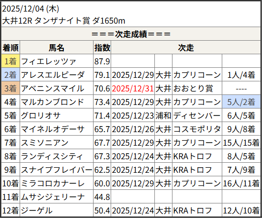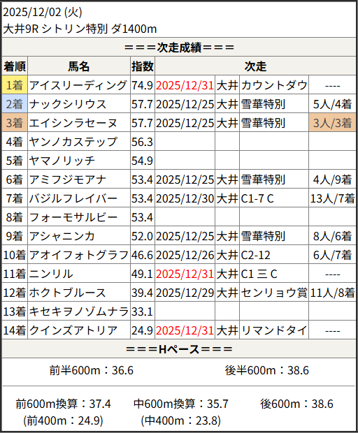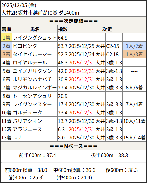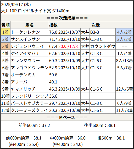 2025/12/31 大井9R リマンドタイコウ賞:結果
