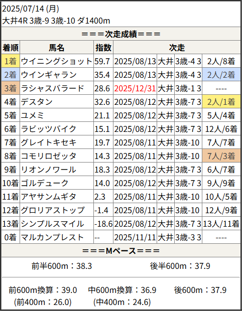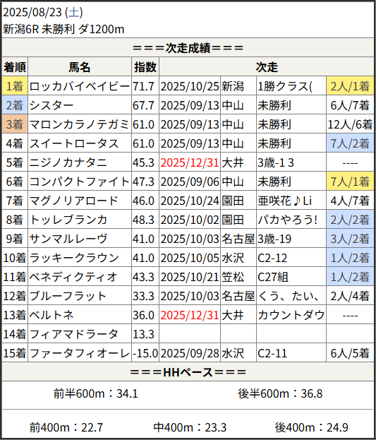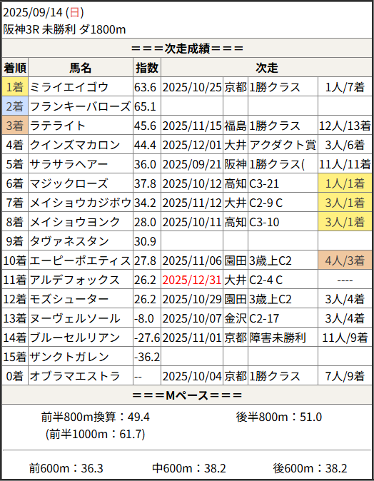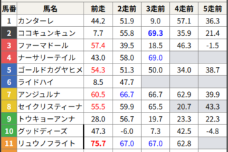 今回のメンバー相手に通用するかは、スピード指数表と合わせてご覧下さい。