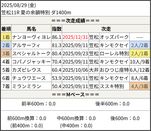 2025/12/31 笠松9R 大晦日特別:結果