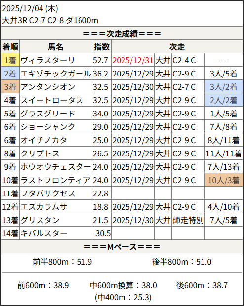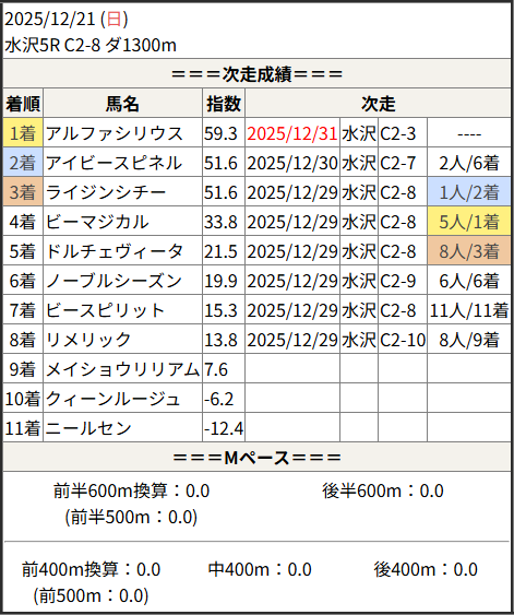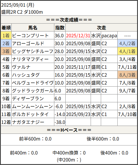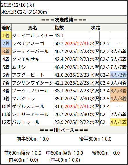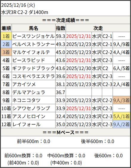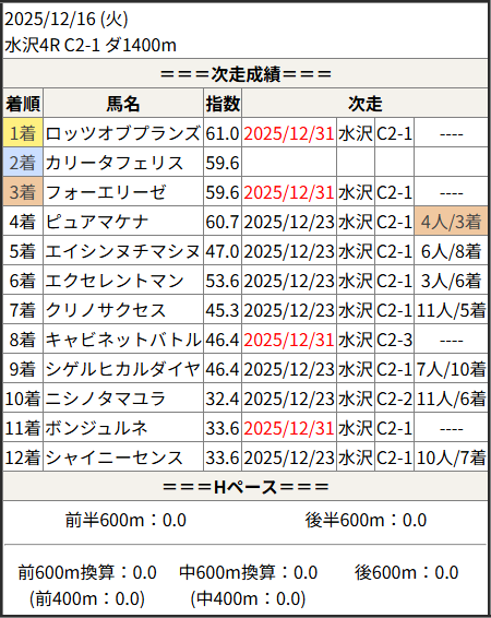 2025/12/31 水沢4R C2-1:結果