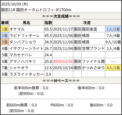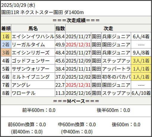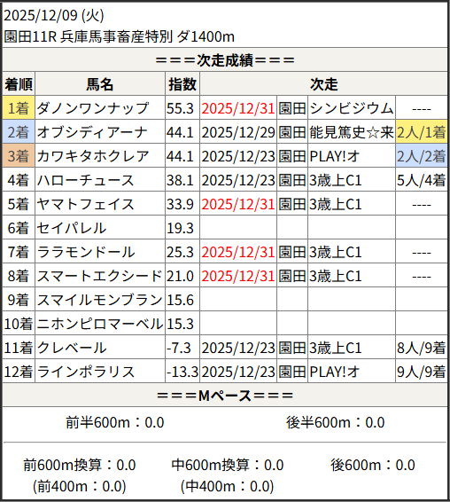 2025/12/31 園田11R 園田ジュニアカップ:結果