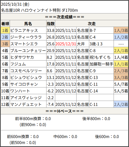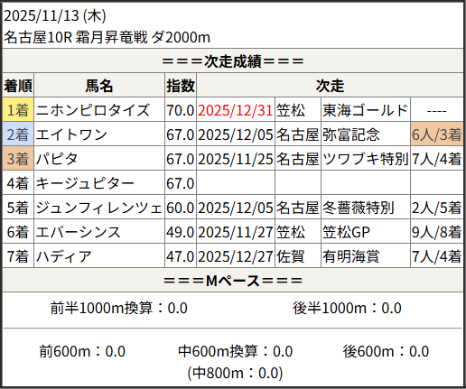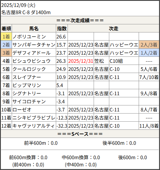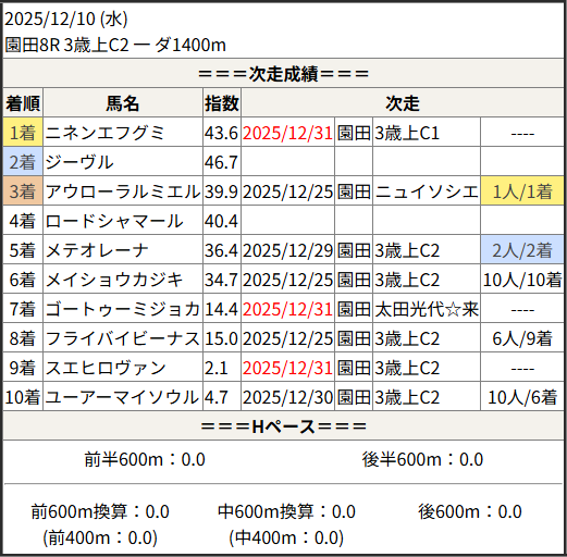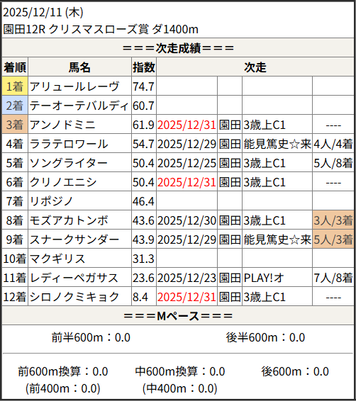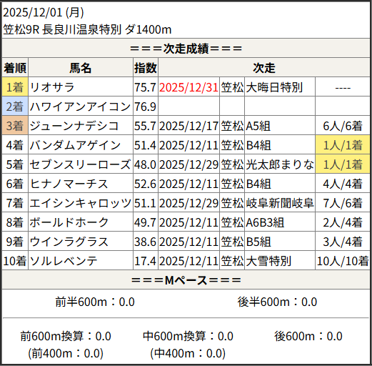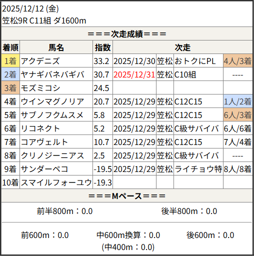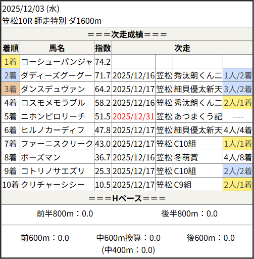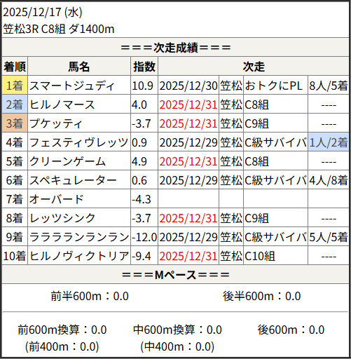 2025/12/31 笠松1R C10組:結果