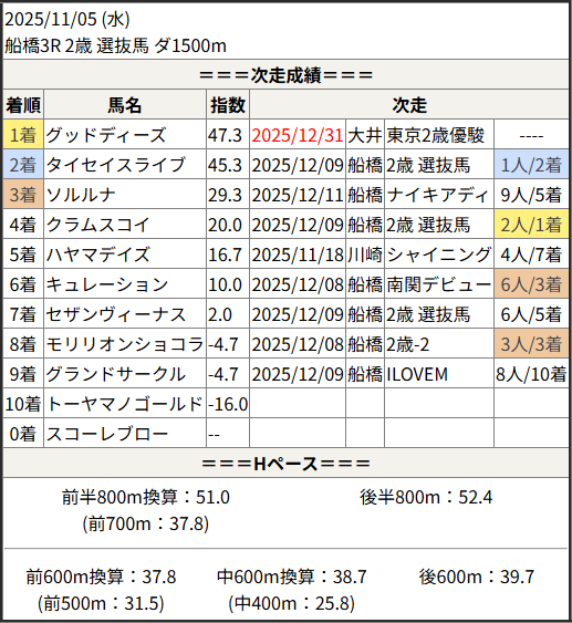 2025/12/31 高知5R C3-3:結果