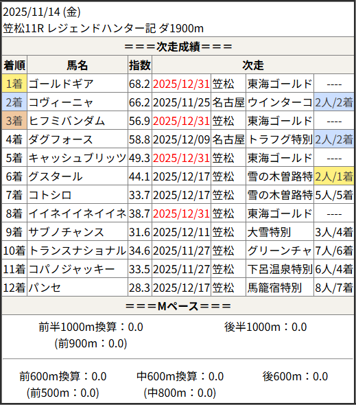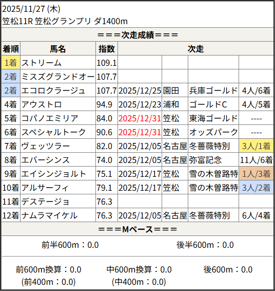 2025/12/31 笠松11R 東海ゴールドカップ:結果