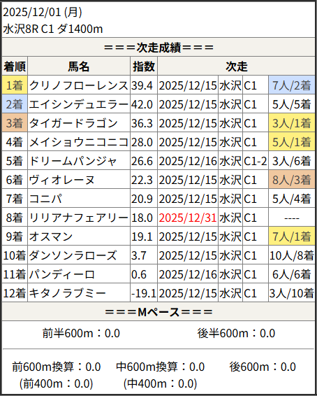 2025/12/31 水沢8R C1:結果
