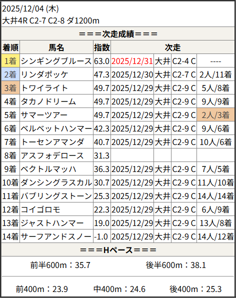 2025/12/31 大井4R C2-4 C2-5 C2-6:結果
