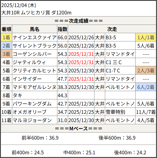 2025/12/31 大井8R C1-4 C1-5 C1-6:結果