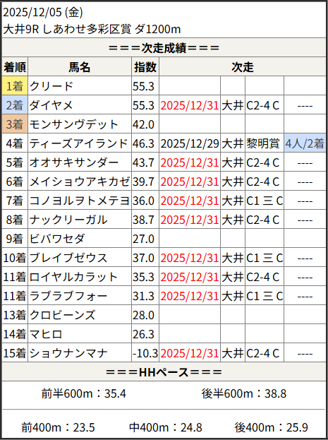 2025/12/31 大井5R C2-4 C2-5 C2-6:結果