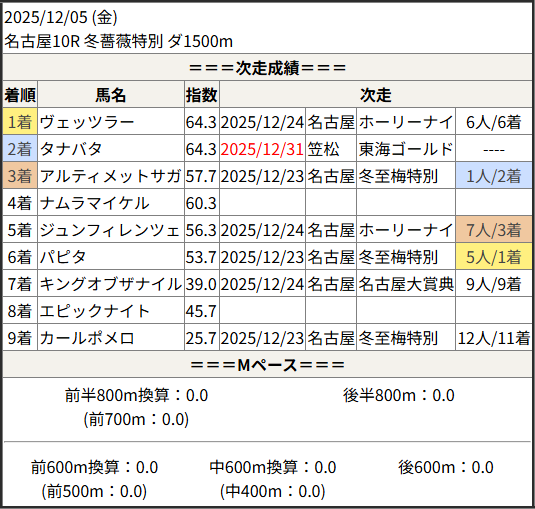 2025/12/31 水沢9R pacapaca賞:結果