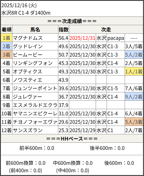 2025/12/31 水沢1R C2-4:結果