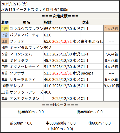 2025/12/31 水沢11R ファイナル特別:結果