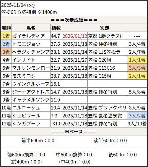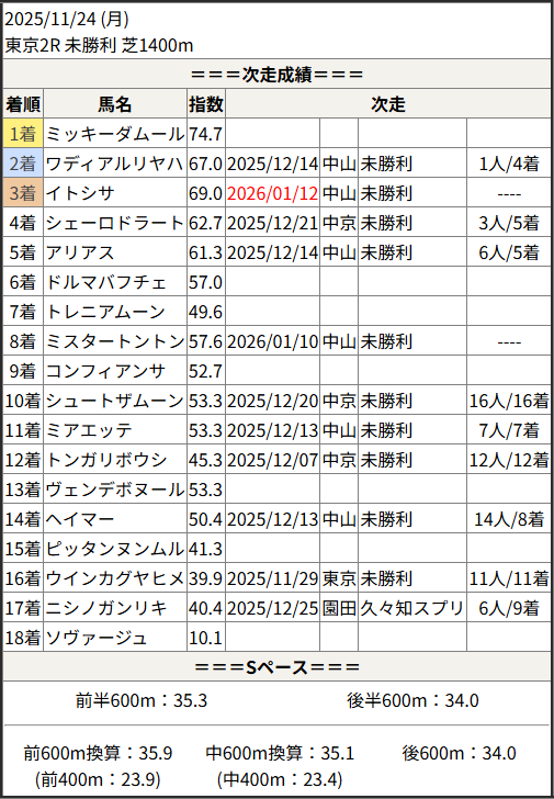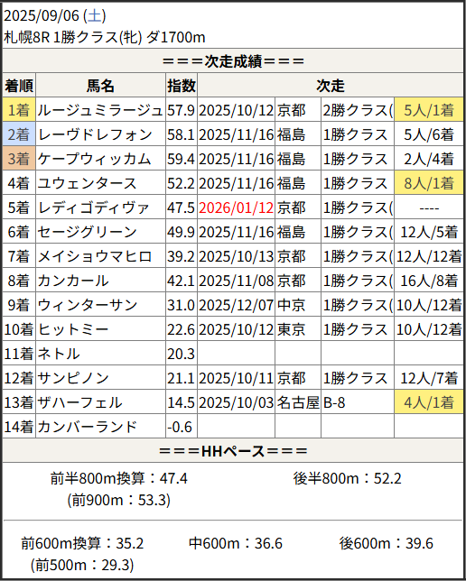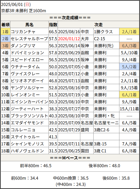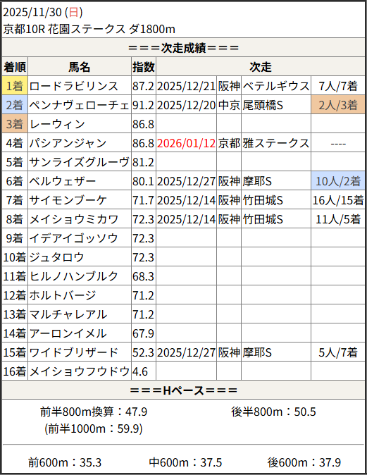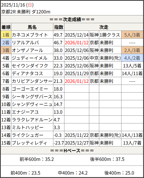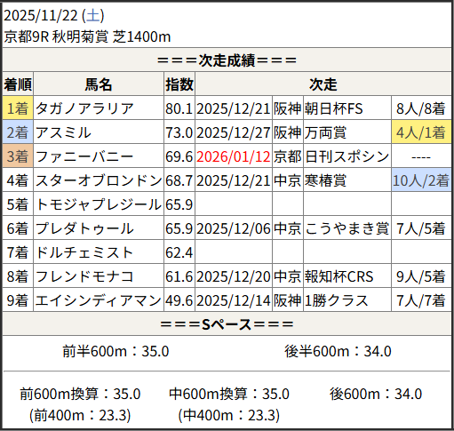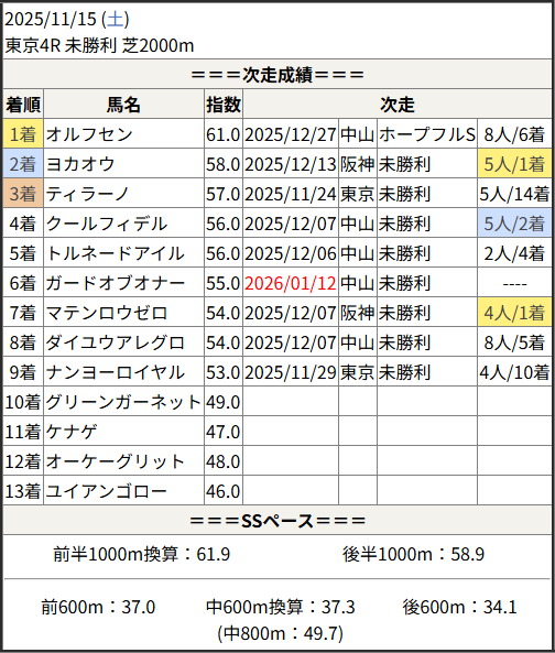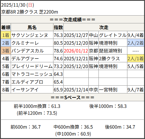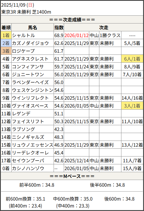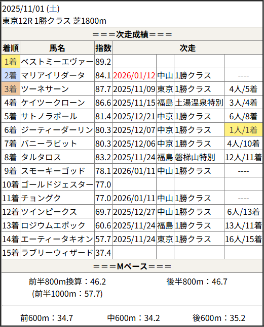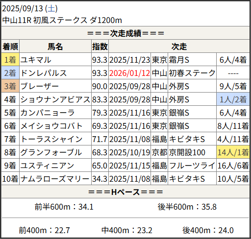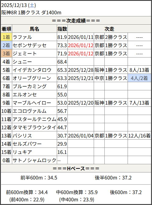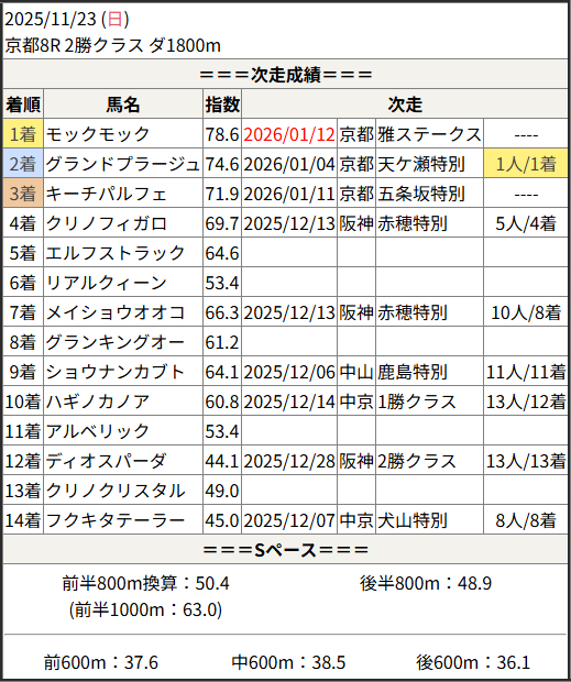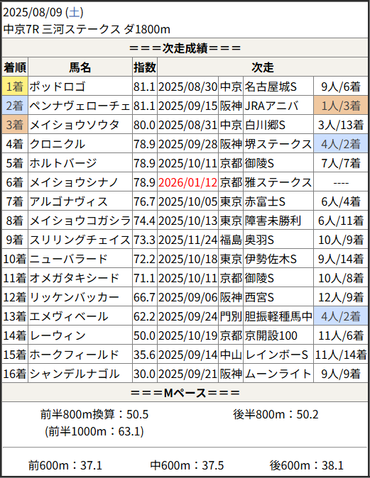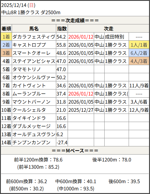 今回のメンバー相手に通用するかは、スピード指数表と合わせてご覧下さい。