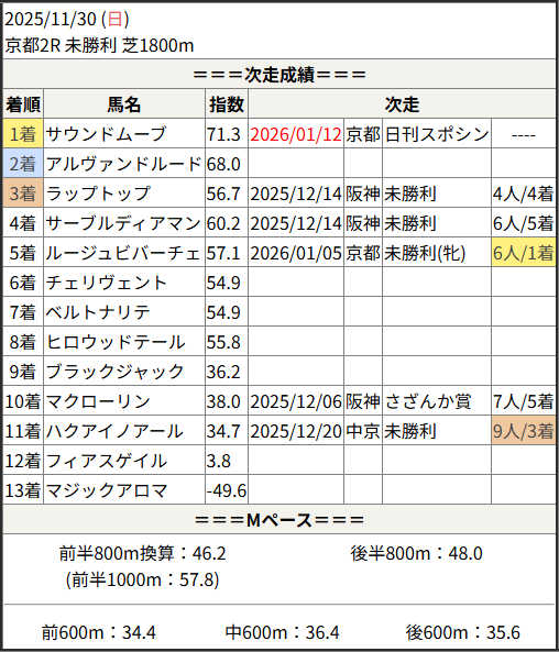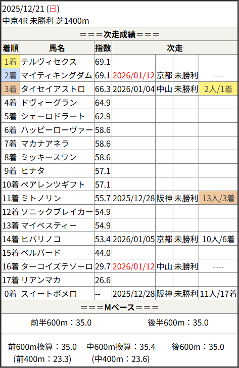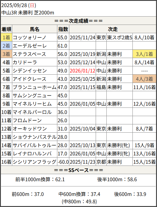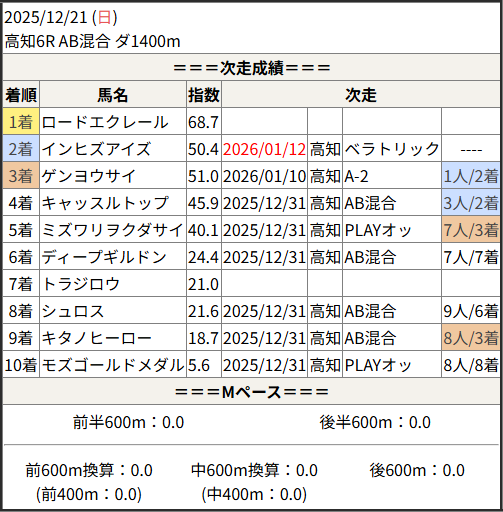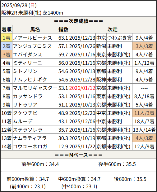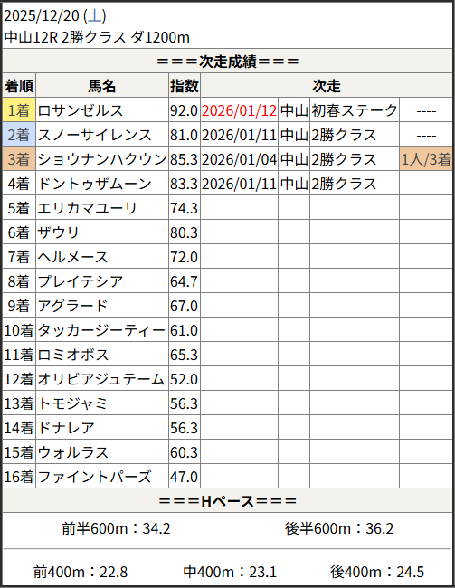 Home / 予想データ / 次走好走 / 2026/01/12 次走好走馬の目立つ組出身