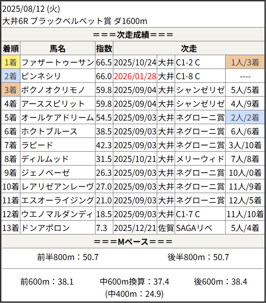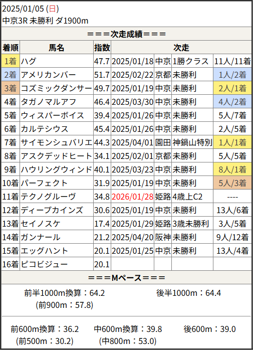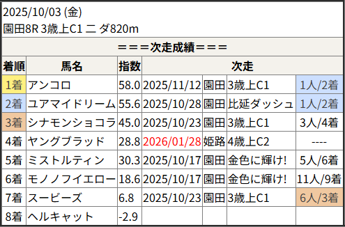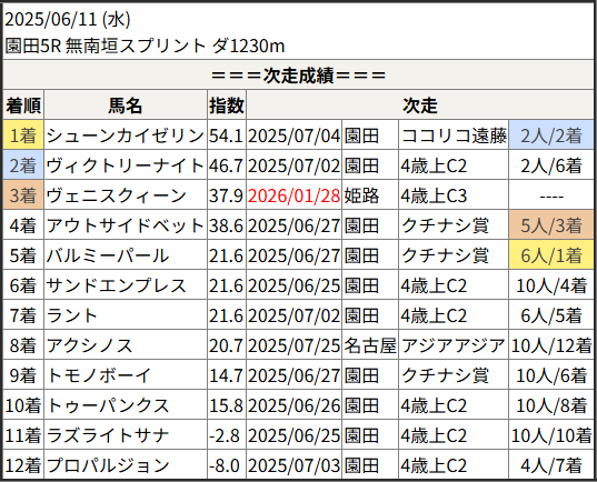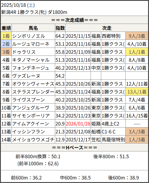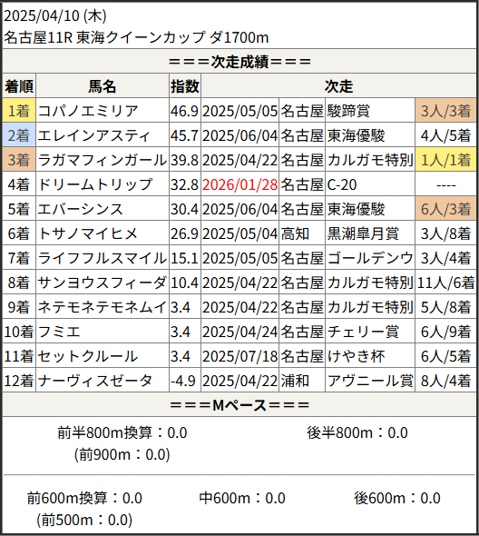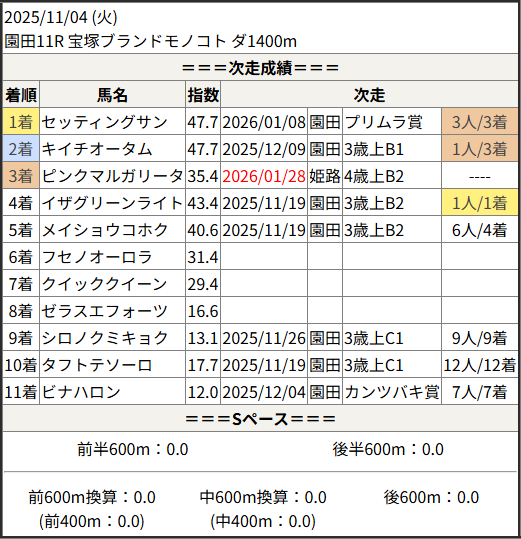 今回のメンバー相手に通用するかは、スピード指数表と合わせてご覧下さい。
