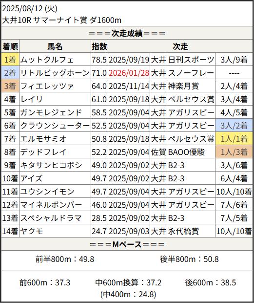 2026/01/28 大井10R 別所坂賞:結果