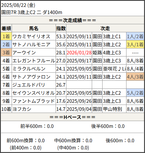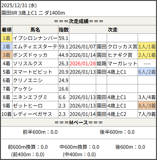 2026/01/28 姫路3R 4歳上C3 一:結果