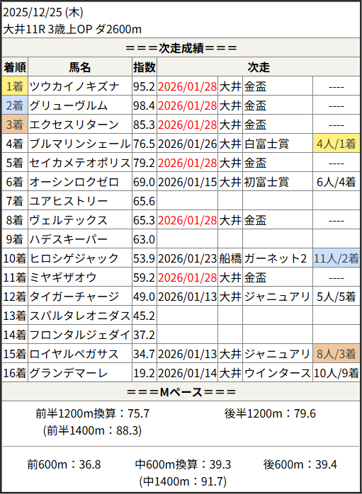 2026/01/28 大井11R 金盃:結果