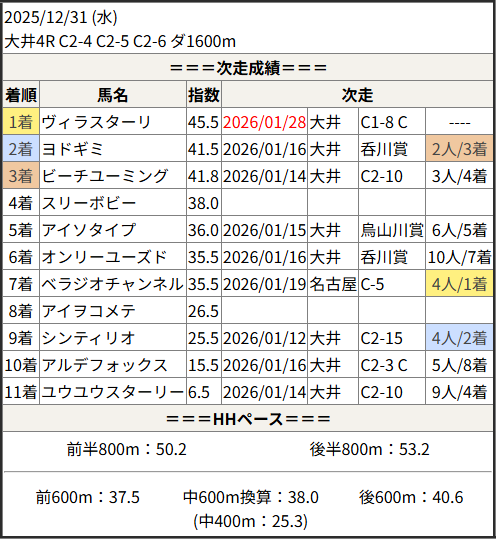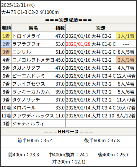 2026/01/28 大井8R C1-8 C1-9:結果