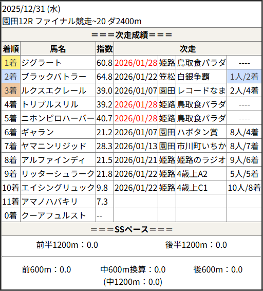 2026/01/28 姫路5R 逸話に残る一戦賞:結果