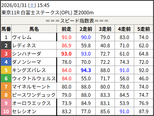 Home / 予想データ / 2026/01/31 スピード指数表スピード指数予想データ2026/01/31 スピード指数表による shunrai コメントはまだありません2026年1月30日 19:20 ※見解・買い目はこちらを参照ください。 東京 京都 小倉 佐賀 共有: X で共有 (新しいウィンドウで開きます) X 友達にメールでリンクを送信 (新しいウィンドウで開きます) メールアドレス Facebook で共有 (新しいウィンドウで開きます) Facebook いいね:いいね 読み込み中…Share ArticlePrevious Article2026/01/30 次走好走馬の目立つ組出身Next Article2026/01/31 次走好走馬の目立つ組出身shunraiRelated Posts 2026/02/13 スピード指数表 2026年2月12日 2026/02/12 スピード指数表 2026年2月12日 2026/02/11 スピード指数表 2026年2月11日コメントを残す コメントをキャンセルメールアドレスが公開されることはありません。 ※ が付いている欄は必須項目ですコメント名前 メール サイト 次回のコメントで使用するためブラウザーに自分の名前、メールアドレス、サイトを保存する。 Δ