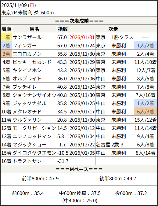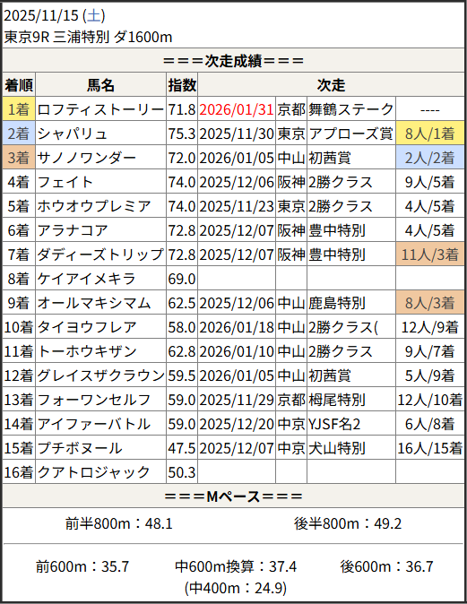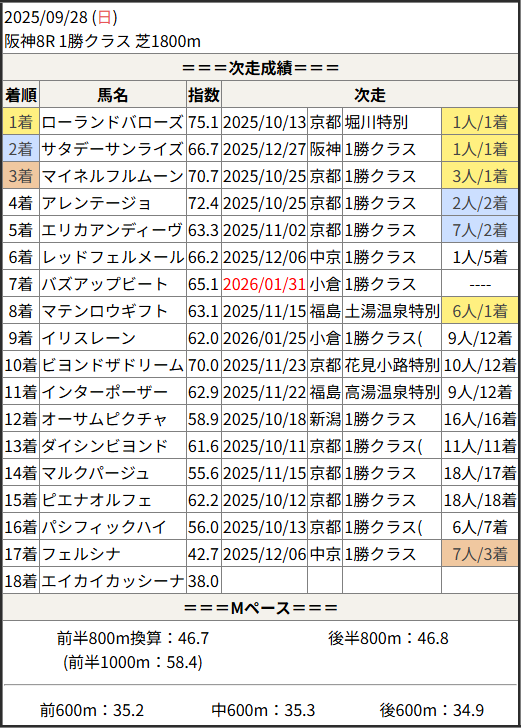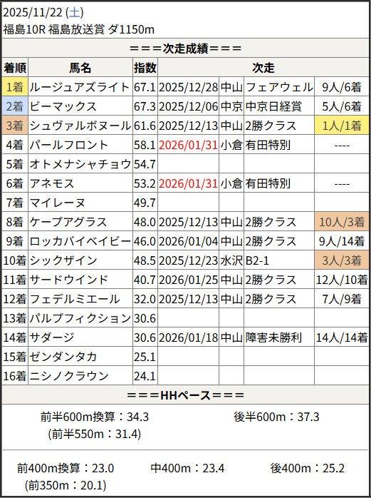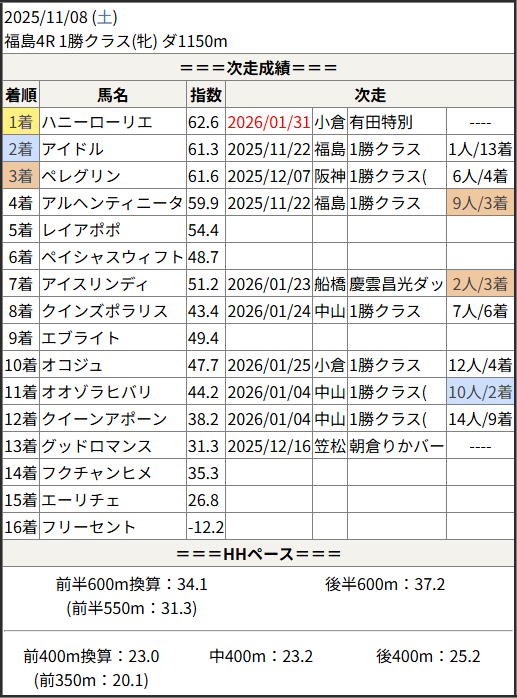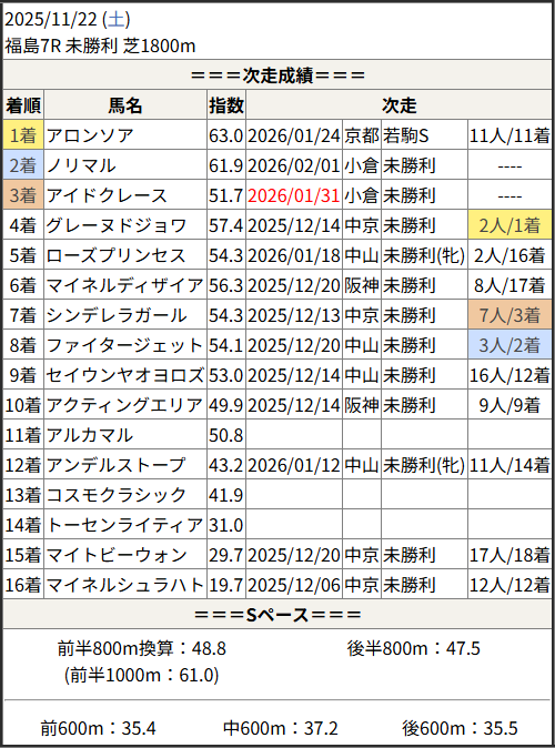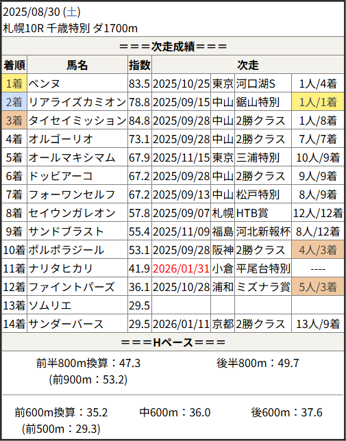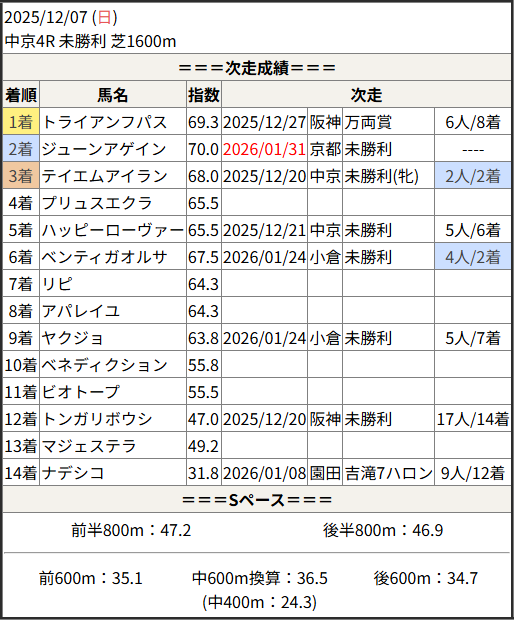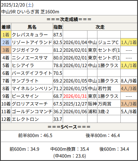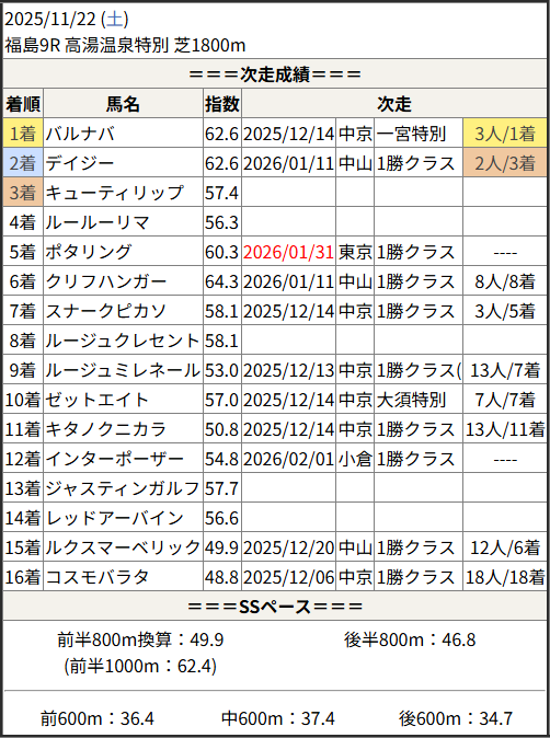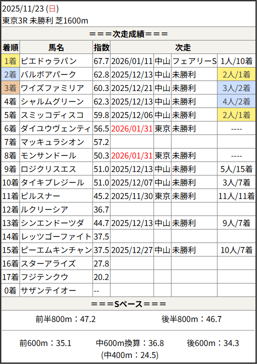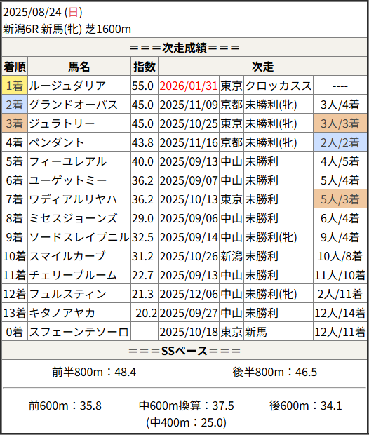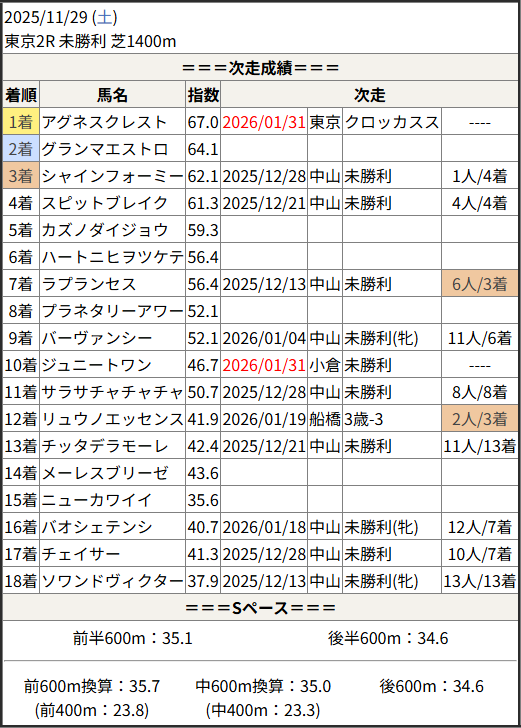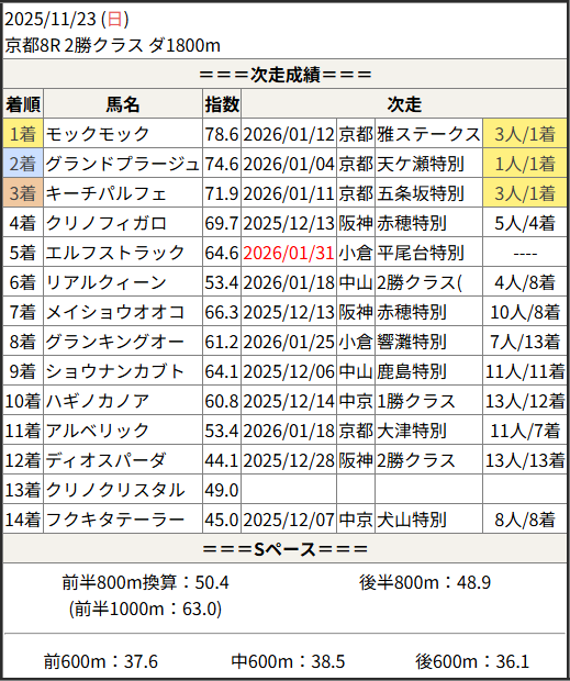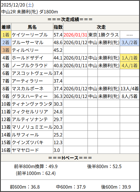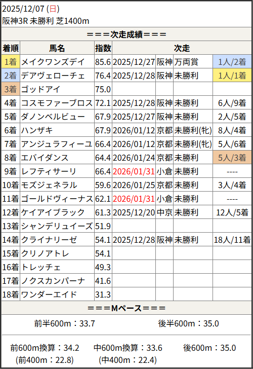 今回のメンバー相手に通用するかは、スピード指数表と合わせてご覧下さい。