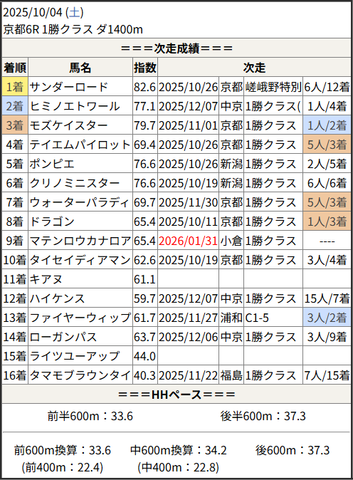 2026/01/31 京都6R 未勝利:結果