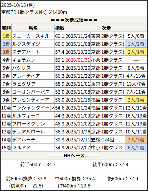 2026/01/31 京都1R 未勝利(牝):結果