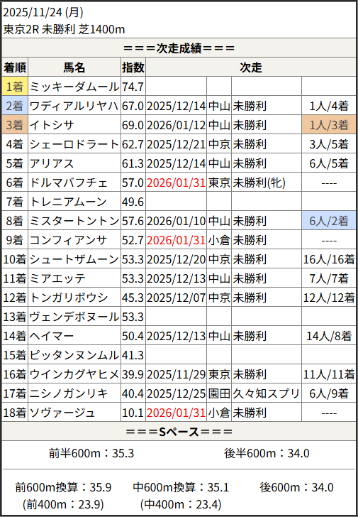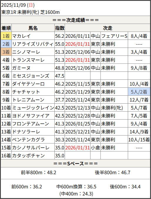 2026/01/31 東京1R 未勝利(牝):結果
