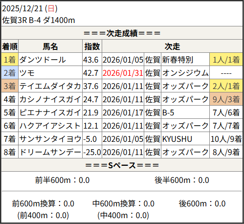 2026/01/31 佐賀9R オンシジウム賞:結果