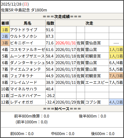 2026/01/31 佐賀5R 雲仙岳賞:結果