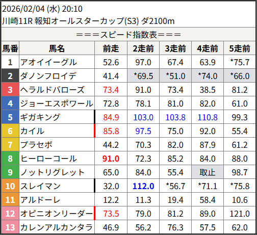 Home / 予想データ / 2026/02/04 スピード指数表スピード指数予想データ2026/02/04 スピード指数表による shunrai コメントはまだありません2026年2月3日 18:20 ※見解・買い目はこちらを参照ください。 川崎 笠松 姫路 共有: クリックして X で共有 (新しいウィンドウで開きます) X クリックして友達にメールでリンクを送信 (新しいウィンドウで開きます) メールアドレス Facebook で共有するにはクリックしてください (新しいウィンドウで開きます) Facebook いいね:いいね 読み込み中…Share ArticlePrevious Article2026/02/03 次走好走馬の目立つ組出身Next Article2026/02/04 次走好走馬の目立つ組出身shunraiRelated Posts 2026/02/03 スピード指数表 2026年2月2日 2026/02/02 スピード指数表 2026年2月2日 2026/02/01 スピード指数表 2026年1月31日コメントを残す コメントをキャンセルメールアドレスが公開されることはありません。 ※ が付いている欄は必須項目ですコメント名前 メール サイト 次回のコメントで使用するためブラウザーに自分の名前、メールアドレス、サイトを保存する。 Δ