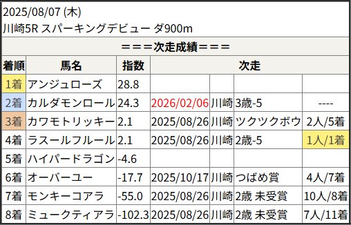 2026/02/06 川崎3R 3歳-5:結果