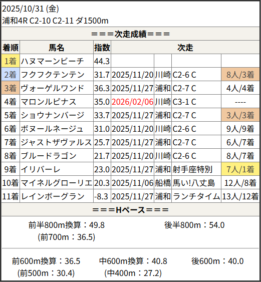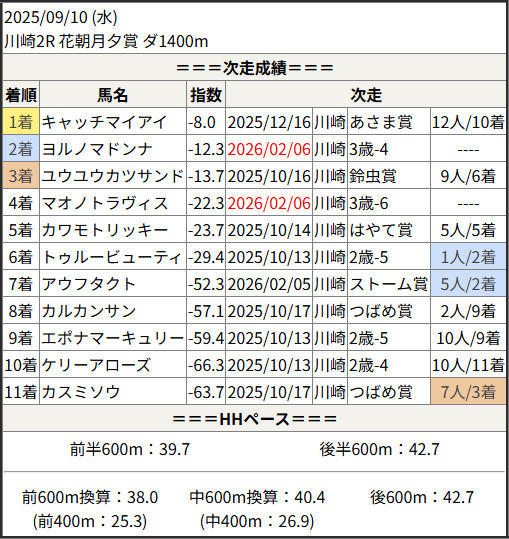 2026/02/06 川崎5R テンポラーレ賞:結果