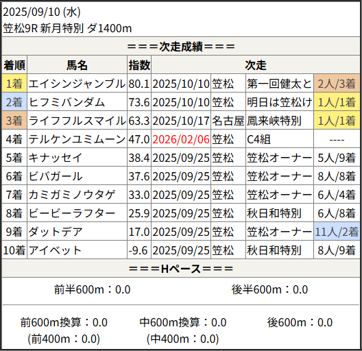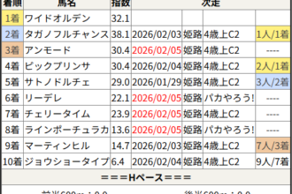 今回のメンバー相手に通用するかは、スピード指数表と合わせてご覧下さい。