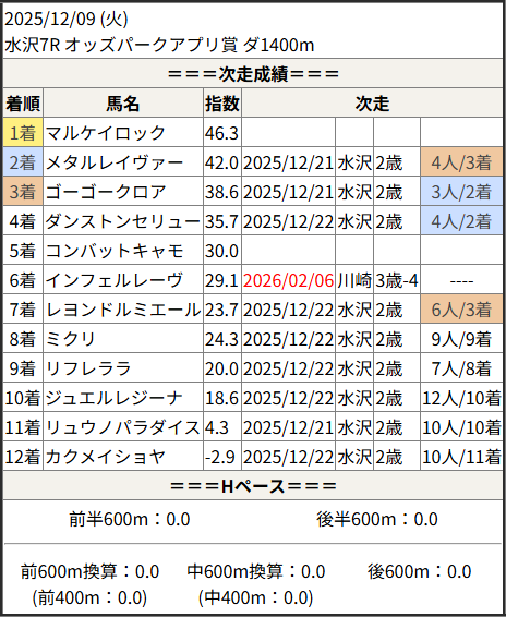 2026/02/06 川崎12R 爆速賞:結果