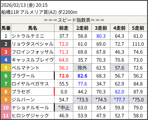 Home / 予想データ / 2026/02/13 スピード指数表スピード指数予想データ2026/02/13 スピード指数表による shunrai コメントはまだありません2026年2月12日 20:27 ※見解・買い目はこちらを参照ください。 船橋 名古屋 共有: X で共有 (新しいウィンドウで開きます) X 友達にメールでリンクを送信 (新しいウィンドウで開きます) メールアドレス Facebook で共有 (新しいウィンドウで開きます) Facebook いいね:いいね 読み込み中…Share ArticlePrevious Article2026/02/12 次走好走馬の目立つ組出身Next Article2026/02/13 次走好走馬の目立つ組出身shunraiRelated Posts 2026/02/12 スピード指数表 2026年2月12日 2026/02/11 スピード指数表 2026年2月11日 2026/02/10 スピード指数表 2026年2月9日コメントを残す コメントをキャンセルメールアドレスが公開されることはありません。 ※ が付いている欄は必須項目ですコメント名前 メール サイト 次回のコメントで使用するためブラウザーに自分の名前、メールアドレス、サイトを保存する。 Δ